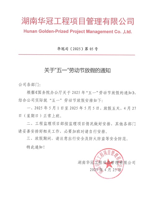 關(guān)于2025年“五一”勞動節(jié)放假的通知